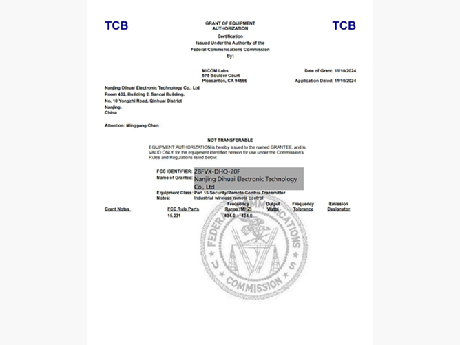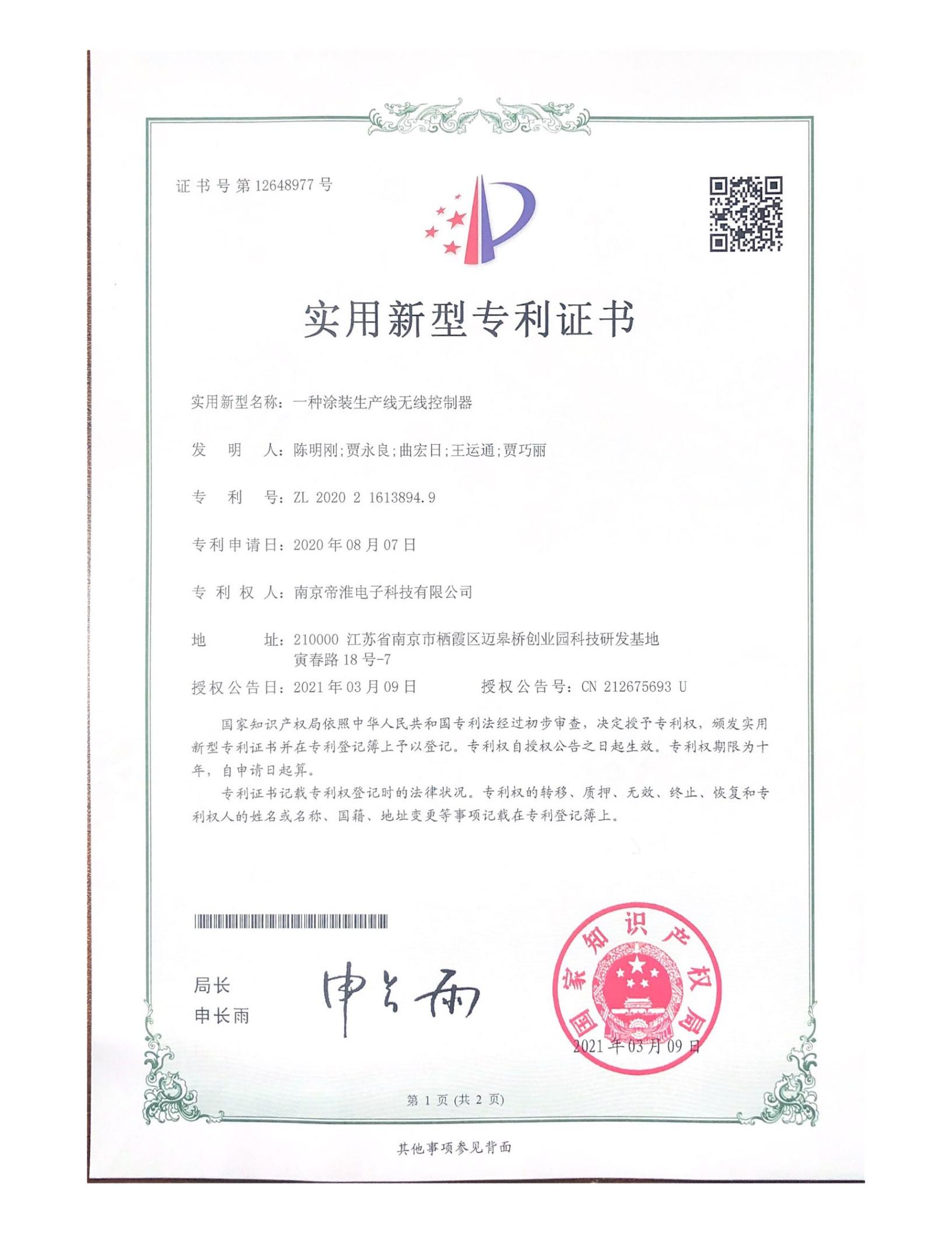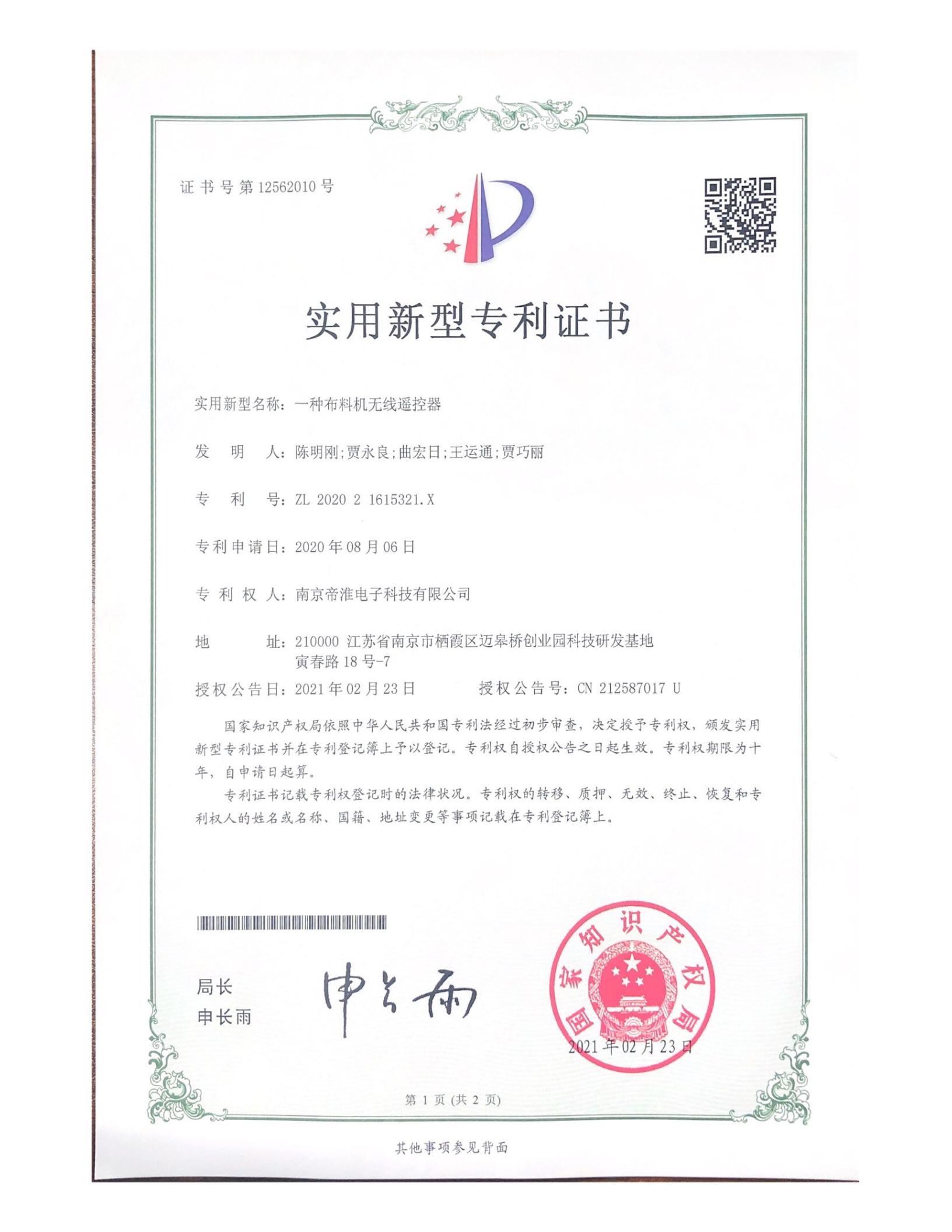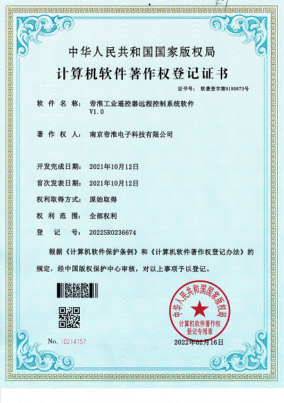 南京帝淮电子科技有限公司,国内工业遥控器行业领军企业,自主研发、定制、非标设计各类工业级无线??仄?、工业级有线控制器、智能化自主算法逻辑的本地控制器等系列产品。已经申请及正在申请的技术专利、外观专利有近三十项左右,并通过了CE欧盟认证、国家级试验检验报告、EMC电磁兼容认证等。